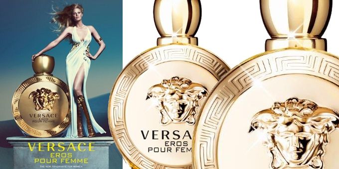Versace Eros Pour Femme е аромат на жената съблазнителка в бляскава златна бутилка.